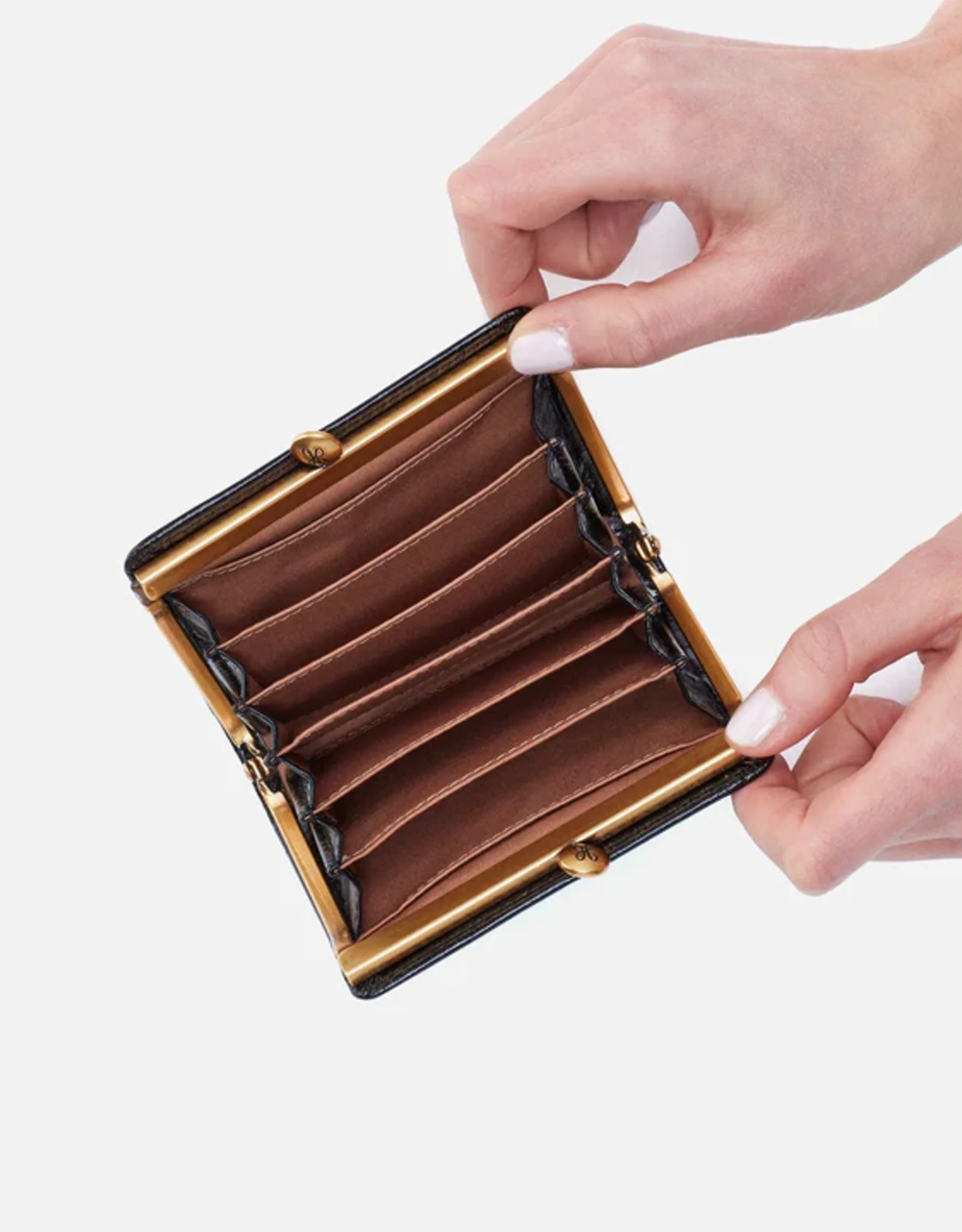 A vintage-inspired card case. Violet Small Kiss-Lock has a compact shape, perfectly sized for your smaller bags, and vintage-inspired details.